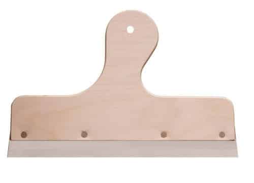 För spackling av golv, väggar och tak. Härdat stålblad med handtag av björkträ.